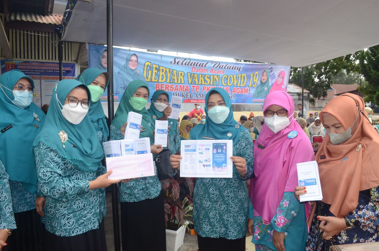 Agam, Marawa – Tim Penggerak PKK Kecamatan Baso gencar melakukan imbauan program vaksinasi melalui leaflet yang dibagikan kepada warga.