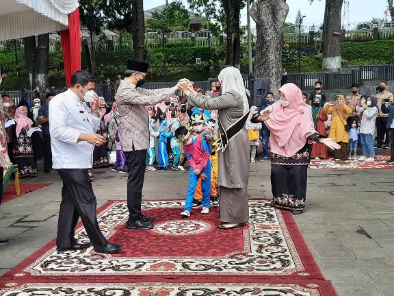 Bukittinggi, Marawa – Sekitar dua ratus murid taman kanak-kanak (TK) dari dua puluh TK/RA se-Kecamatan Mandiangin Koto Salayan memeriahkan acara Gebyar TK/RA Kecamatan Mandiangin Koto Salayan Tahun 2022 yang diselenggarakan oleh Kelompok Kerja Kepala TK (K3TK) Kota Bukittinggi di pelataran Taman Jam Gadang, Kamis, (17/02/2022). Acara tersebut dibuka oleh Wali Kota Bukittinggi Erman Safar didampingi Ny. Fiona Erman Safar selaku Bunda PAUD Kota Bukittinggi.