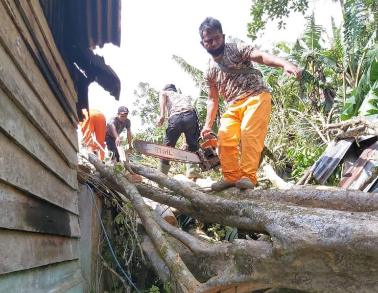 “Kini kita masih melakukan proses pembersihan material pohon tumbang bersama tim gabungan dari kecamatan,” sebutnya.