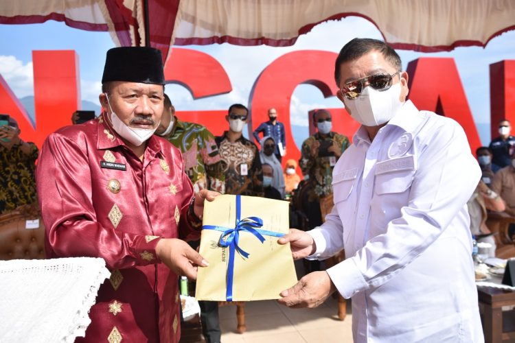 Proposal diserahkan Bupati Agam, Dr. Andri Warman kepada Menteri Perencanaan Pembangunan Nasional / Kepala Badan Perencanaan Nasional, Dr Suharso Monoarfa, saat kunjungan ke Danau Maninjau, Kamis (08/04).