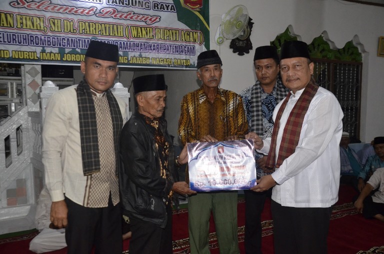 Menyahuti aspirasi masyarakat tersebut, Wakil Bupati Irwan Fikri, awali sambutannya mengucapkan terima kasih kepada pengurus masjid dan masyarakat Kampung Jambu atas diterimanya TSR Pemerintah Kabupaten Agam di Masjid Nurul Iman.