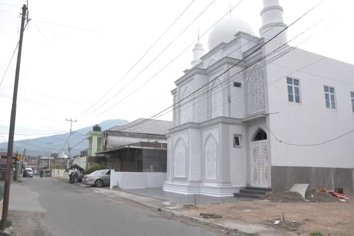 Bangunan mushalla dengan dinding bercorak yang didominasi warna putih, dilengkapi kubah dan dua menara. Dilihat sekilas, hampir serupa Masjid Al Hakim di tepi Pantai Padang yang bak Taj Mahal di India sana.