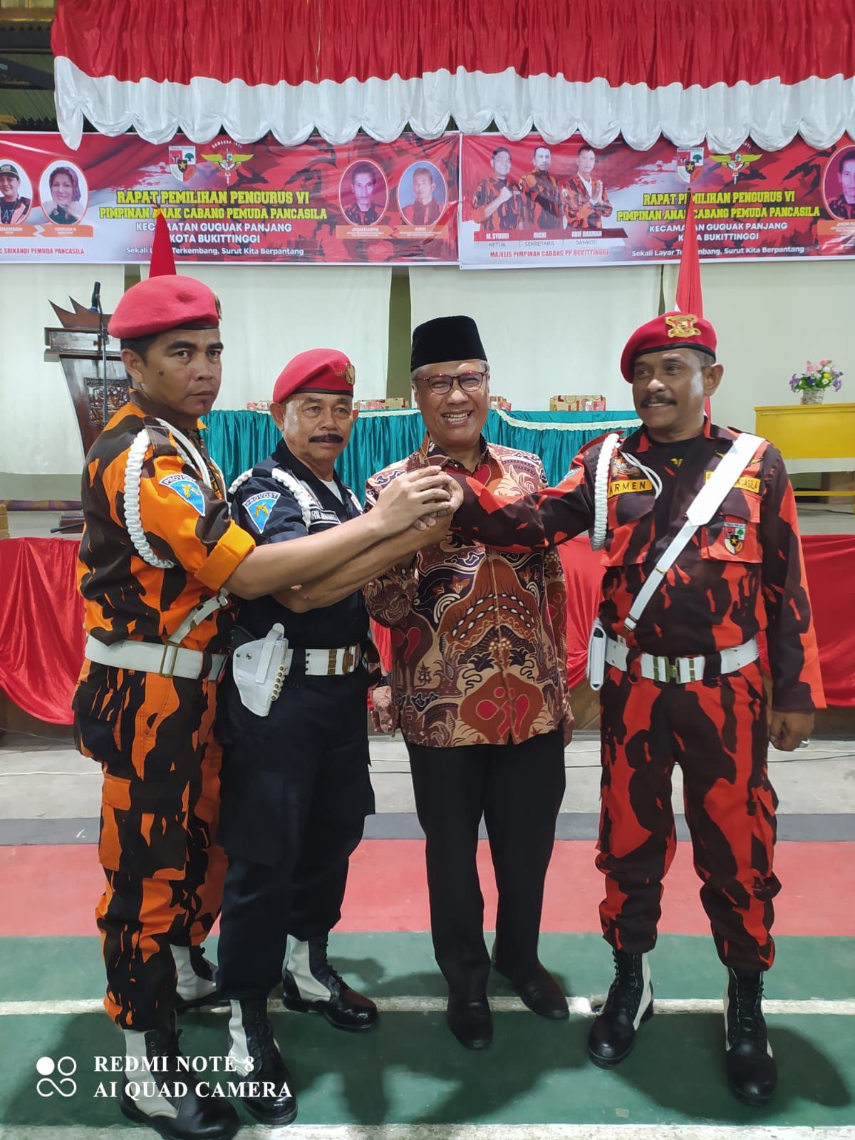 Bukittinggi, Marawa – Wakil Walikota Bukittinggi, Marfendi hadiri Rapat Pemilihan Pengururs (RPP) PAC Pemuda Pancasila Kecamatan Guguk Panjang Bukittinggi di aula Sport Hall Bukittinggi, Kamis(21/07/22).