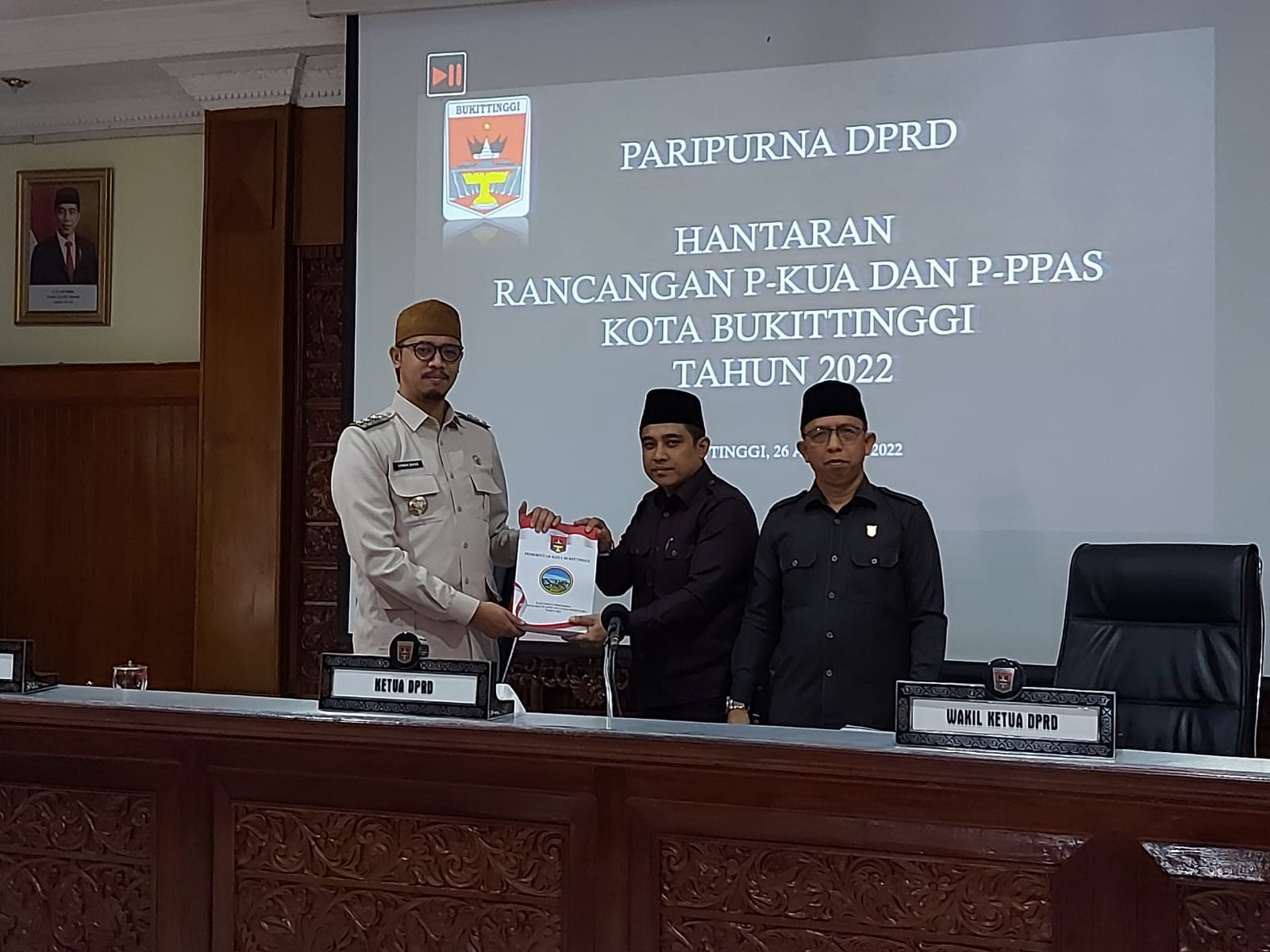 Bukittinggi, Marawa – Wali Kota Bukittinggi hantarkan Nota Rancangan Perubahan Kebijakan Umum Anggaran-Prioritas dan Plafon Anggaran Sementara (KUA-PPAS) APBD 2022. R-KUA PPAS ini, dihantarkan secara resmi dalam rapat paripurna di Gedung DPRD Bukittinggi, Jumat (26/08).