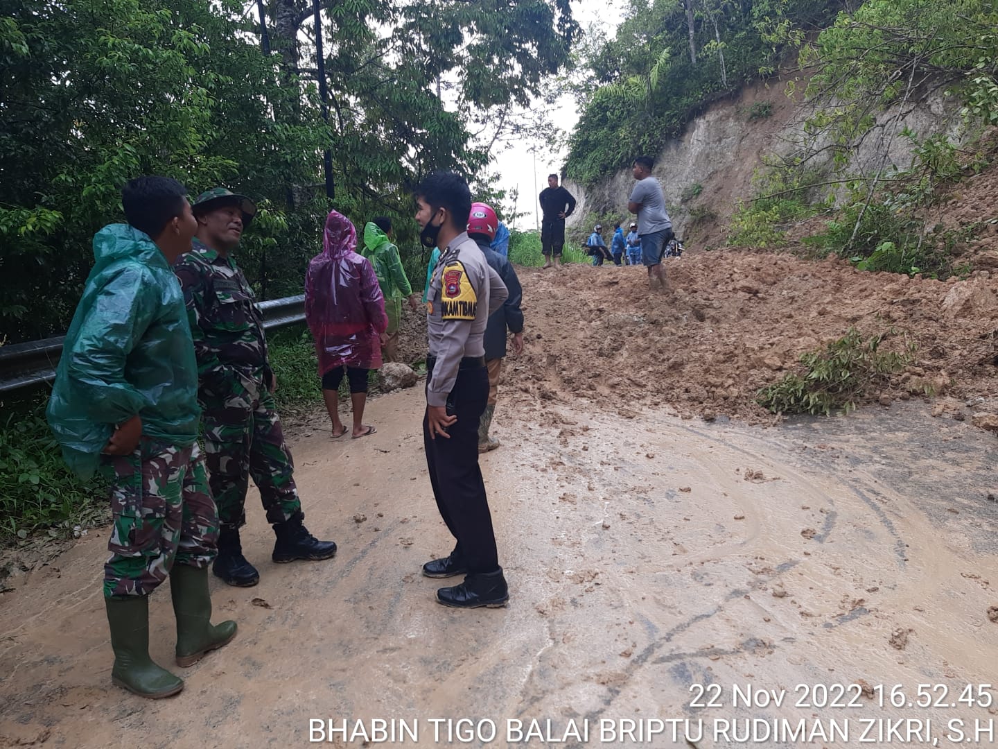 Marawapost.com, Agam – Tim Gabungan Polres Agam, TNI dan masyarakat Matur respon cepat datangi lokasi tanah longsor di jalan lintas Matur – Bukittinggi Jorong Panta Nagari Panta Pauh Kecamatan Matur Kabupaten Agam, Selasa (22/11/22).