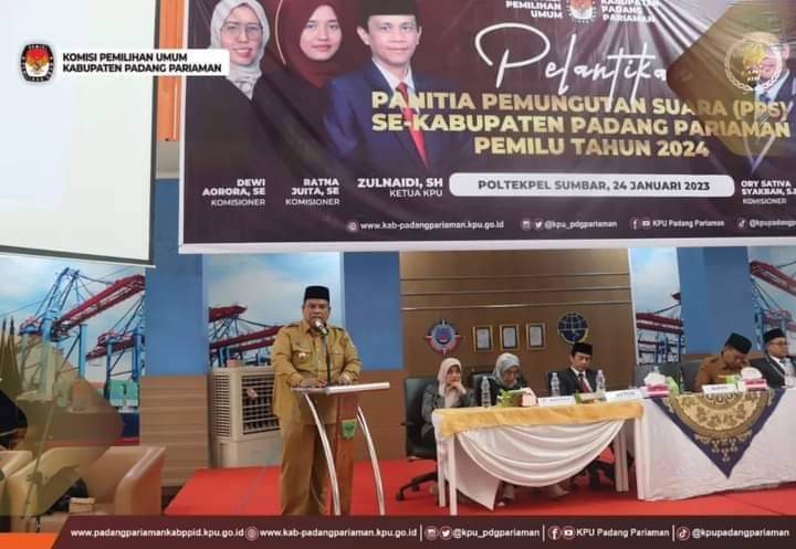 Hal ini dikatakan Bupati Padang Pariaman, Suhatri Bur saat memberi sambutan dalam acara pelantikan anggota PPS Pemilu tahun 2024 se Kabupaten Padang Pariaman. Bertempat di Gedung Politeknik Pelayaran Sumbar di Kecamatan Ulakan Tapakis, kemarin, Selasa (24/01/23).